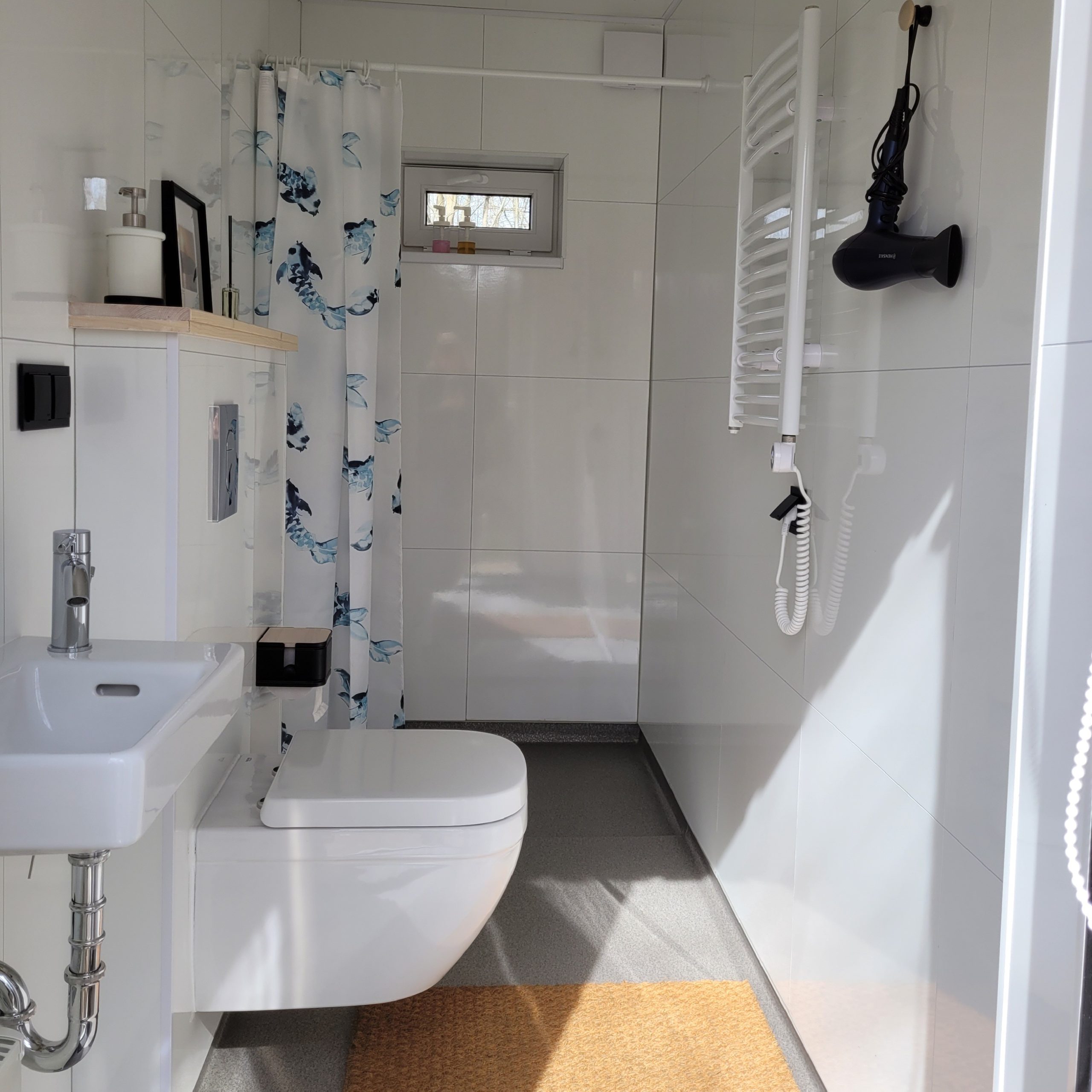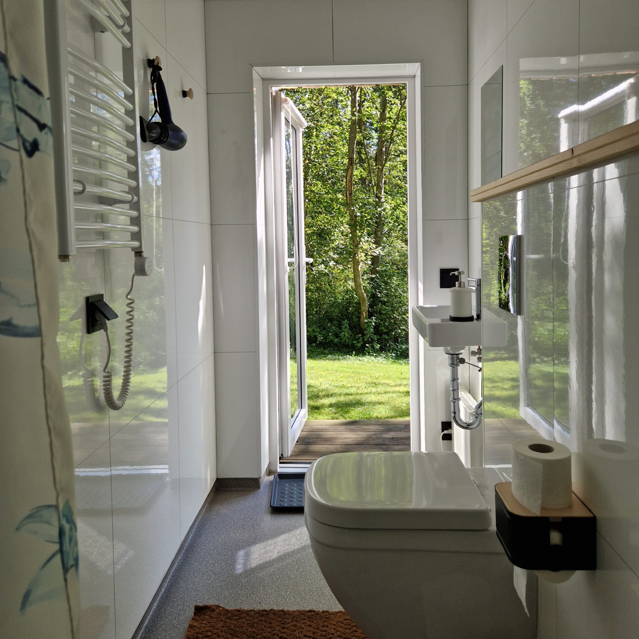 - Vonios kambarys (bendras, atskirame pastate): karštas vanduo, dušas, rankšluosčiai, prausimosi reikmenys, plaukų džiovintuvas, tualetinis popierius